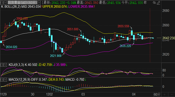 今天周三,黄金窄幅震荡已经2个交易日,整体价格维持在2620-2660箱体运行,预计下半周肯定会打破这个区间。目前1小时上下轨区间在2635-2650,而4小时上下轨区间在2625-2662,早盘思路延续看震荡,先看1小时区间的破位情况定后续,收盘报价2643一线,日内计划参考2650-52范围初次触及做空,若先回撤触及2635-32区域做多。由于4小时SAR指标延续低位向上发展,刘铭诚个人偏向低位做多看涨对待。黄金策略:回撤2632做多,2625补仓多单,
