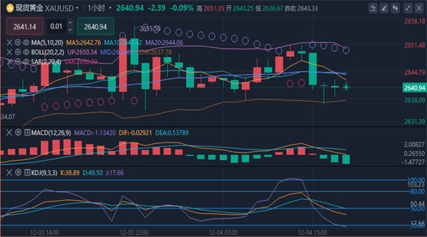 (美黄金06,4589.4,1.08%,模拟交易)交投于2641.31