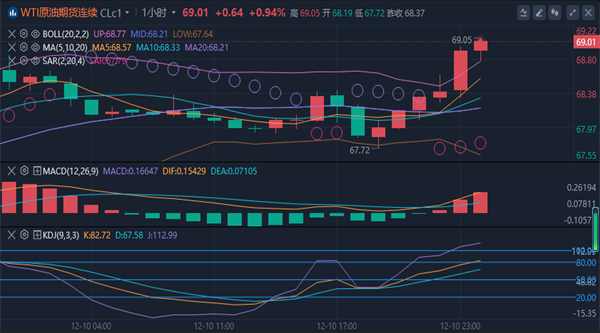 均线和200简单移动平均线。在同一张图上,还有一条连接的下跌趋势线,阻力在69.75美元。趋势线接近从70.57美元的波动高点向67.04美元的低点向下移动的76.4%的斐波那契回撤水平。主要阻力仍然在70.00美元附近,在此之上价格可能会加速上涨。在上述情况下,价格甚至可以测试71.50美元的阻力。任何更多的上涨可能要求在近期测试72.80美元的阻力区。下行方面,第一个主要支撑位位于67.80美元附近。收盘价低于67.80美元可能会导致更大幅度的下跌。下一个主要支撑位是66.00美元。未来几天,任何更多的损失都可能使油价逼近65.00美元。
