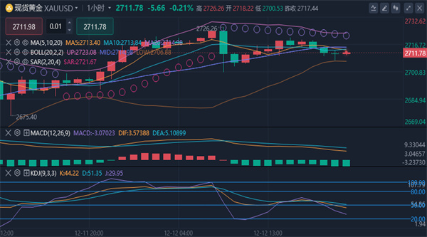 (美黄金06,4592.2,1.14%,模拟交易)在前一日突破一个月高点后,周四小幅回落至2712.50