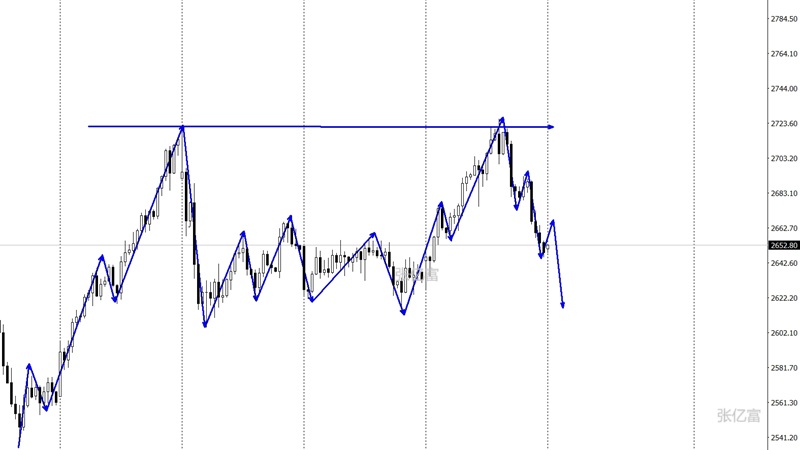 黄金上周出现了先涨后跌走势,最高点触及2726