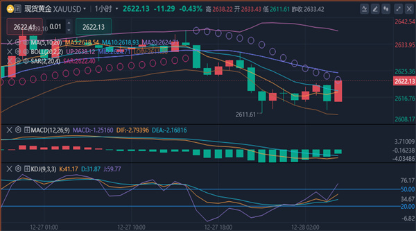 (美黄金06,4592.5,1.15%,模拟交易)市场整体承压,现货黄金周五收盘报2633.49