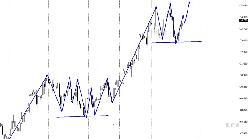 在66.7美元一带企稳之后,油价运行了一个五浪向上走势,目前油价向上动能依旧处于较强劲的状态,今日有望延续。综合以上分析,张亿富总结:原油