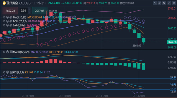 美元指数大幅上升的背景下,周一(1月13日)美市盘前,黄