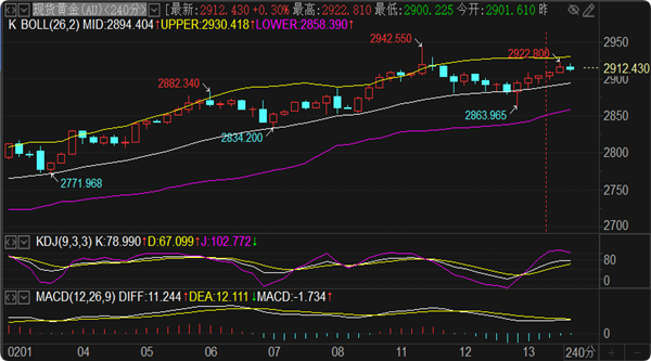 今日阻力方面关注1小时上轨2925一线,其次是4小时误差带上轨2930位置,更上方以日线布林带上轨2940和历史高点2942当做强压范围。支撑方面留意1小时中轨2904位置,更下方参考2895一线,1小时布林带下轨粘合1小时MA200