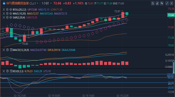 周三(2月19日)欧盘时段,WTI