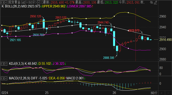 今日阻力看早盘高点2930和2935形成的压力范围,向上偏差看昨夜美盘高点2944。支撑方面留意4小时下轨2907和1小时下轨2897,向下偏差看日线中轨2887位置。另一方面