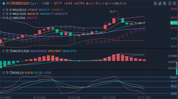 原油小幅反弹,一度上涨1.7%,至68.37美元/桶,为近一周半新高,目前交投于67.69美元/桶附近。