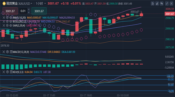 黄金交投于3001.13附近,