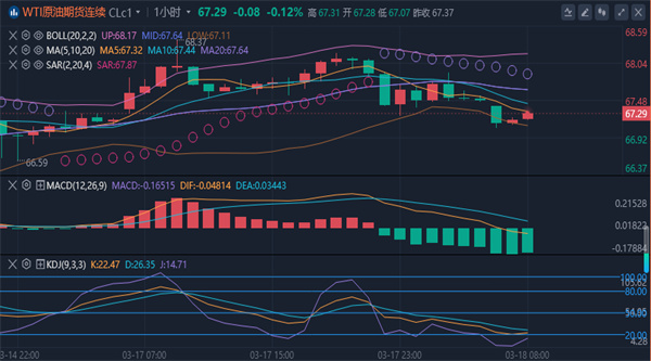 原油期货价格小幅上涨,市场正处于筑底过程。价格短暂突破上周高点67.94美元,盘中最高触及68.37美元,随后回落。