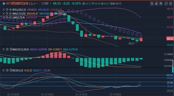 (美无铅汽油05,3.2605,1.09%,模拟交易)在短期内仍维持震荡走势。从消息面得知油价在地缘政治和全球的经济双重影响下维持区间震荡格局。从目前的盘面上来看,短期内上方阻力关注四小时布林带中轨和MA30和MA10均线粘合处67.3附近,向上偏差留意日线布林带中轨67.7附近,下方支撑留意一小时布林带下轨和日线SAR指标粘合处66.0关口,向下支撑偏差留意本月地点65.2一线。综合以上,今日原油以低位做多为主,高位做空为辅。原油策略:日内触及66.2-65.9区间做多,65.4补仓一次,防守64.8,目标67.5-68.2上破持有。