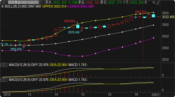 黄金策略:实时现报价3032一线。