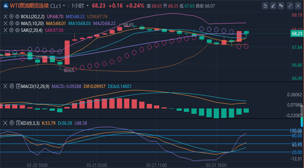 (美原油(美原油06,96.22,0.82%,模拟交易)05,103.00,1.80%,模拟交易)高点68.7,低点66.1,周线十字