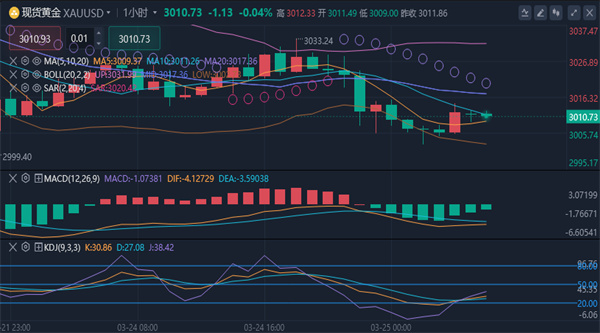 均线和MA10均线3035-3000美元区间的压力和支撑,破位尝试顺势跟进看多/空。黄金4小时图显示,SAR指标阻力点下移至3035美元附近一线,于日线MA5均线重合短期形成双重压制。多头想要重启还是需要强势突破此位置。小时布林带下轨3000和1小时布林带下轨2992,向下偏差看3000整数关口,如若实体跌穿3000大关,更下方依次参考上周低点2981和周线MA5均线支撑点2960位置。综合来看,黄金今日