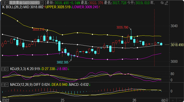 黄金实时行情分析:盘面上突破周一早盘高点3026之后,4小时SAR指标已经完成顶底转换出现在底部向上运行,单从4小时