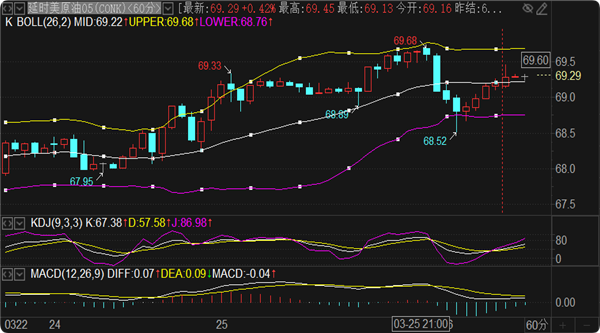 油价格来到了69.2一线,思路和盘感不一样,我也没有精力去指正不相关的人。盘面上来看,周K线连续三周都是长下影阳K线控盘,周三日内的思路很简单,防守周线MA5均线68.3和本周低点67.9范围看涨对待,行情走势有望延续上行考验70和70.8两个压制节点。