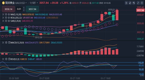 黄金市场延续近期强势格局,价格在短短一小时内快速拉升最高触及3055.63