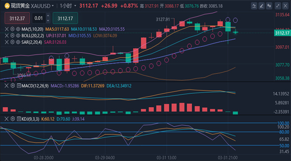 (沪金2604,1009.44,-0.16%,模拟交易)格形成了一个清晰的上升通道。CCI(14)指标为105.32,虽处于高位但尚未达到极端超买区域。中短期支撑位于3095美元(通道下轨)及3070美元(前期震荡高点)。RSI(14)为74.32,同样处于超买区域但尚未出现顶部背离形态。若黄金价格能够有效突破3127.76美元阻力位,并站稳3150美元关口,则有望延续上升趋势,下一目标位将指向3200美元心理关口。支撑这一观点的因素包括全球不确定性上升、