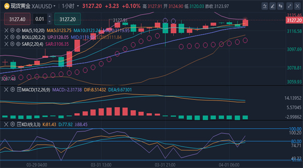 金价周一延续强劲走势,升穿每盎司 3100 美元,并初步站上3120关口,盘中再创历史新高至3127.76美元/盎司,收报3123.80美元/盎司,当日涨幅约1.3%,为连续三个交易日刷新历史记录高点,季度涨幅约19%,创下自 1986 年以来最强季度表现。