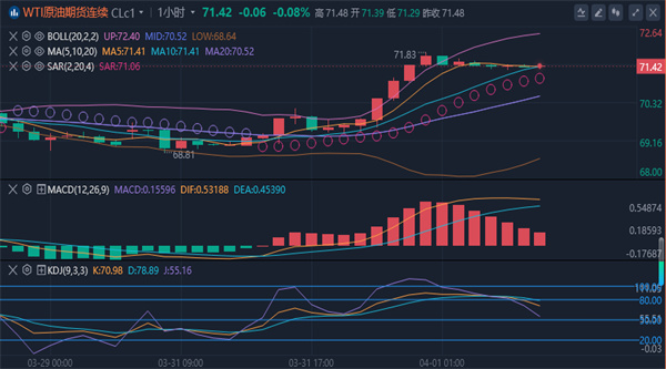 原油期货日内呈现波动状态,价格在欧市早盘大幅上扬,突破70.00整数关口后有所回落,但仍保持在相对高位震荡。