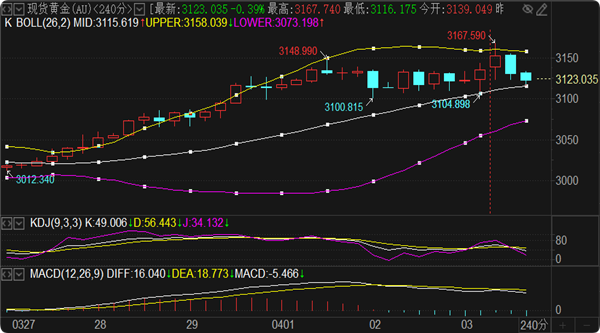 均线3112位置,1小时布林带下轨位于3110一线,4小时布林带下轨处于3100关口。没下破3100之前,不用考虑昨天说的3085和3070两个节点。阻力方面关注先看1小时布林带中轨3134位置,向上突破看4小时布林带上轨3150,和月线高点3167压制点。综合来看目前4小时SAR指标转换出现在顶部,这也预示着阶段性见顶信号出现,周四和周五可以参考3167历史高点看空,对于欧美盘操作上刘铭诚建议