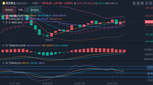 黄金在周二(4月8日)企稳反弹,日内涨幅近1%,成功收复前一交易日失地。此次反弹终结了连续三日的回调走势,