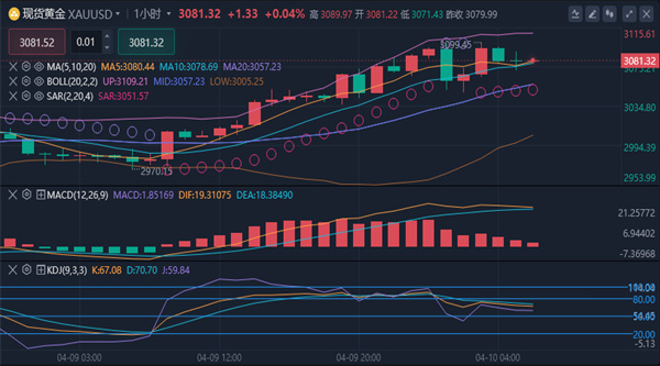 (美黄金06,4579.1,1.28%,模拟交易)有望突破3057美元并向3100美元迈进;2. 关税反制的实际落地影响: 4月10日加税措施生效后,若