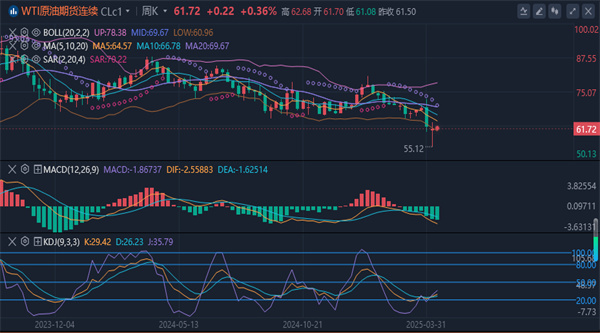 原油期货价格小幅上涨,但仍徘徊在59.23美元至63.70美元的关键技术区间内。这一狭窄区间表明市场缺乏明确方向,未来可能会朝任一方向突破。