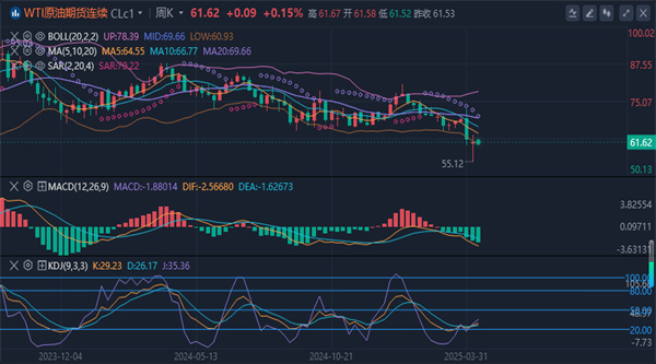 原油期货价格小幅上涨,但仍徘徊在59.23美元至63.70美元的关键技术区间内。这一狭窄区间表明市场缺乏明确方向,未来可能会朝任一方向突破。