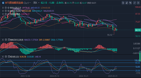 原油期货价格下跌,在未能突破64.18美元附近的阻力位后,难以维持上周的上涨势头。目前价格处于关键转折点63.06美元下方,交易员正关注价格是否可能回调至59.33美元的支撑位。