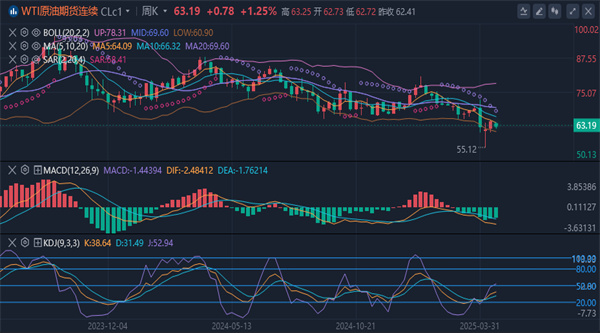原油期货价格下跌,在未能突破64.18美元附近的阻力位后,难以维持上周的上涨势头。目前价格处于关键转折点63.06美元下方,交易员正关注价格是否可能回调至59.33美元的支撑位。