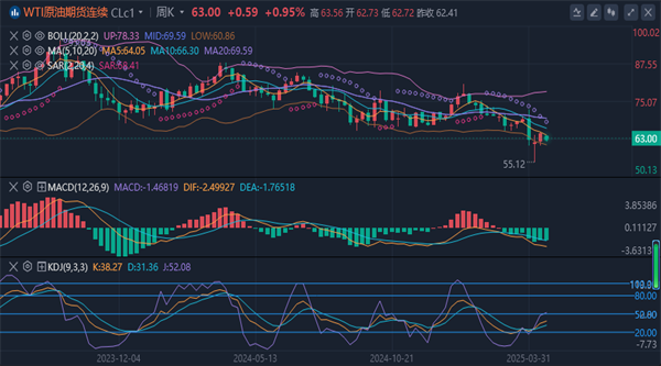 (美原油(美原油06,95.53,0.09%,模拟交易)05,101.87,0.68%,模拟交易)期货从关键支撑位反弹。WTI原油突破了63.06