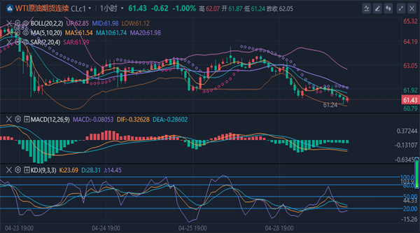 期货价格下跌25美分,跌幅0.4%,至每桶65.61美元;美国西德克萨斯中质原油(WTI)期货价格下跌18美分,跌幅0.3%,至每桶61.87美元。值得注意的是,两大