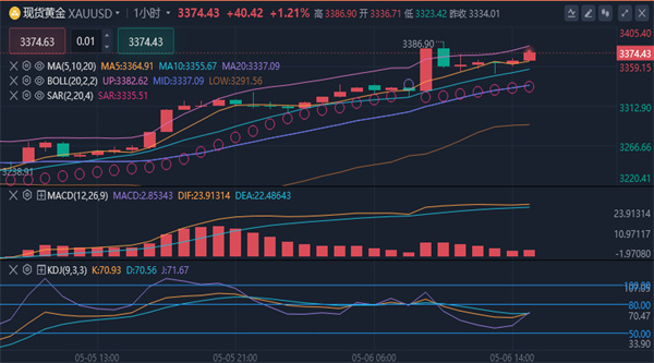 黄金震荡上涨,最高曾触及3386.84