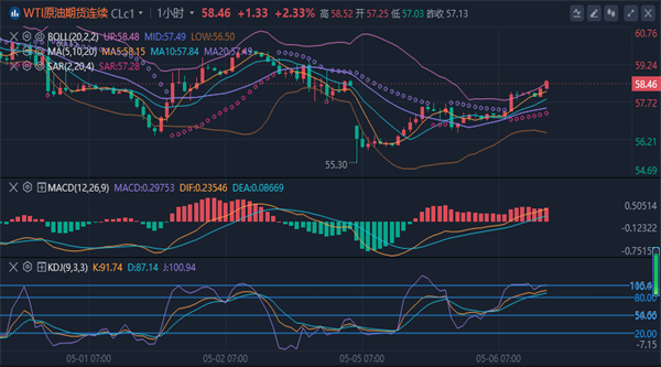 (美原油(美原油06,95.61,0.18%,模拟交易)05,101.52,0.34%,模拟交易)可能反弹至每桶 57.68 美元至 58.20 美元的区间,因为其在 55.47 美元处找到支撑位。