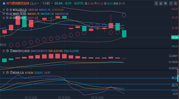 (美原油(美原油04,62.80,-0.79%,模拟交易)03,62.99,-0.80%,模拟交易)从日线图级别看,中期走势均线系统压制油价