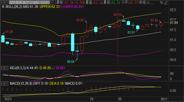 油价格的波动预计会更平缓,有可能直接在60.8至62.5范围结束,所以无需过分看行情涨跌情况出现,想参与短线建仓的朋友可参考这个温和震荡范围自行把握空间。