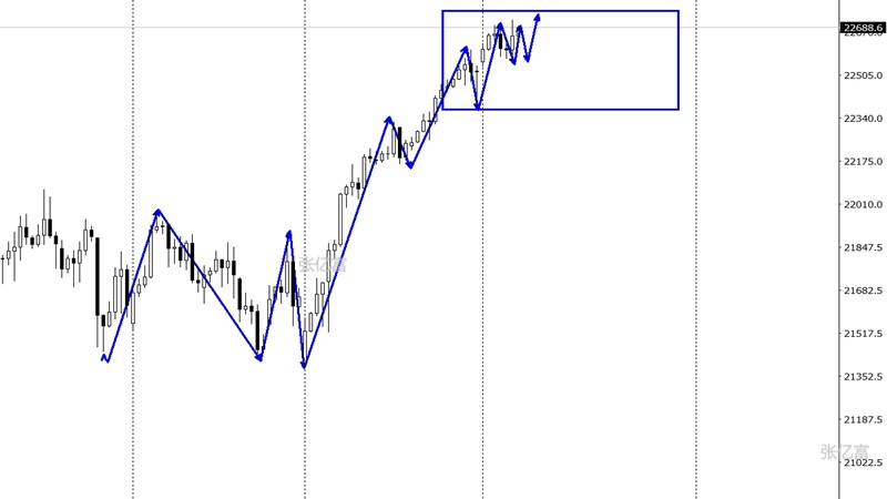 加息来应对通胀;高盛将美联储降息预测提前至9月。纳指震荡上涨,日线级别收录一根小阳线,连续阳线形态支撑,纳指多头趋势运行,虽然指数增长幅度出现了减少,但是多头格局依旧没有改变,后市依旧考虑以看涨为先。综合来看张亿富认为,纳指昨日回撤后形成支撑平台进一步走高,今日依靠该水平看涨一波,今日操作上考虑回撤布局多单为先,高空等待破位,上方关注22700-22800美元阻力,下方关注22550-22400美元支撑。