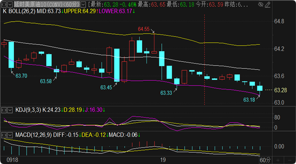 原油策略:实时现报价63.3一线。