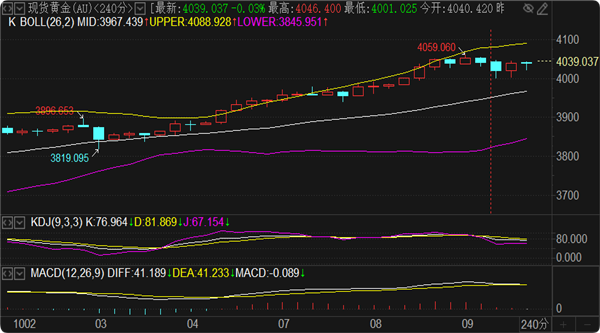 4小时图形周SAR指标顶部承压位于4056,晚间计划参考4050-3056范围做空,只要今日没能破新高,不妨试着坚持拿着等下跌。今日阻力方面关注4050-4060,向上破位参考4075和4085。支撑方面留意4025和4012,向下破位看4000整数关口,周三的3995和3984这两个回撤低点,算是多头的最后的倔强。整体来看黄金价沪金2602,1008.66,0.22%模拟交易格超幅上涨,本周初上涨153个点,涨幅达到+3.95%,我看好周尾下跌修复指标,操作上刘铭诚建议反弹做空为主,低位做多为辅。