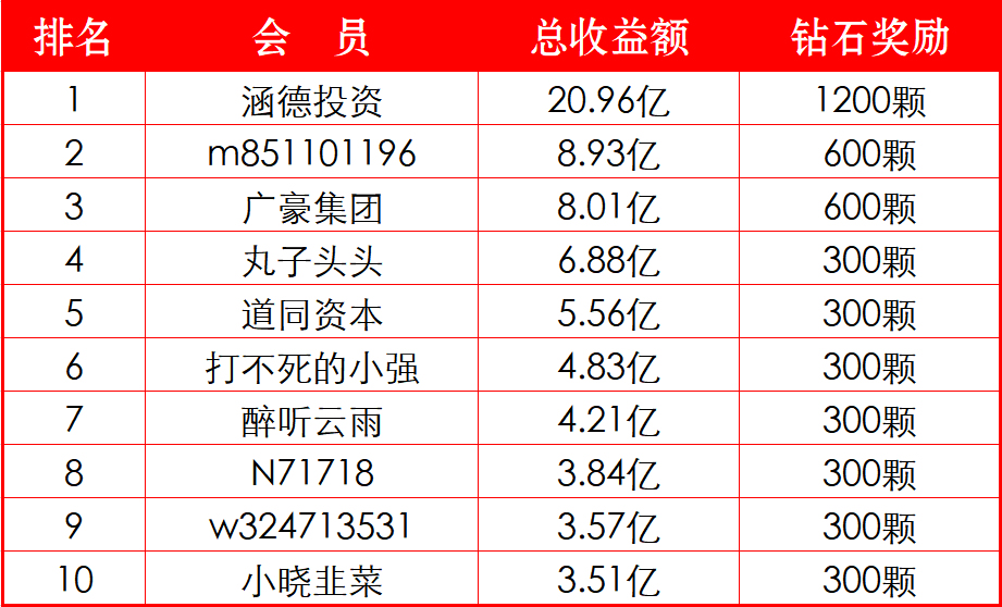 “游侠股市第二十四届模拟期货大赛”自2025年8月25日开始,至2025年10月18日结束,恭喜 @广豪集团 以801.24%的总收益率成为本届大赛的冠军,奖金¥1200元,并可获赠游侠币30亿元!恭喜 @涵德投资 以20.96亿元的总收益额获得本届大赛精英奖第一名,将获得虚拟钻石1200颗的奖励!本届大赛的获奖名单如下: