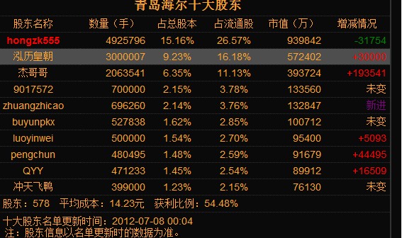 本人因听信第一大股东的价值投资理念和不减持承诺,累计买入青岛海尔股票696260手,现亏损4800万元,对于第一大股东不负责任的承诺和公开言论,强烈要求管理员给予谴责和从重处罚。