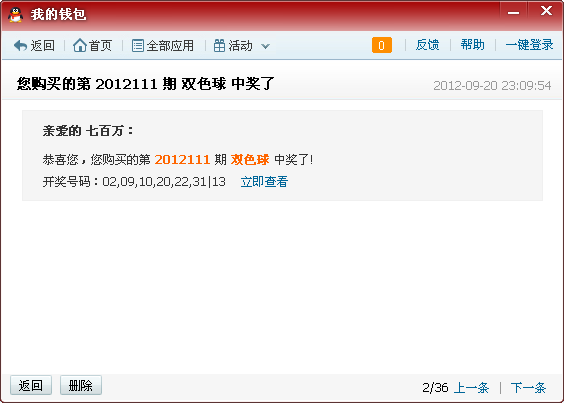 今天买现实双色球蓝球用昨天游侠彩票第五期蓝球的号码13,今天果然篮球也是开的13啊。可惜红球一个没有对上号,自娱自乐一下