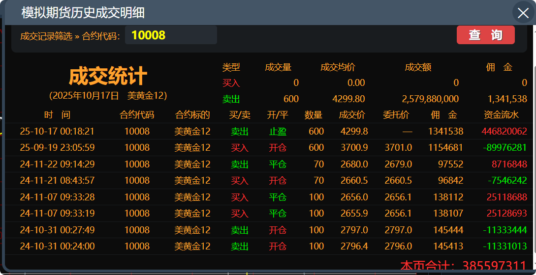 00:24持有黄金期货近1个月,终于止盈了。可为什么我设置的是4300止盈,却给我的成交价是4299.8?