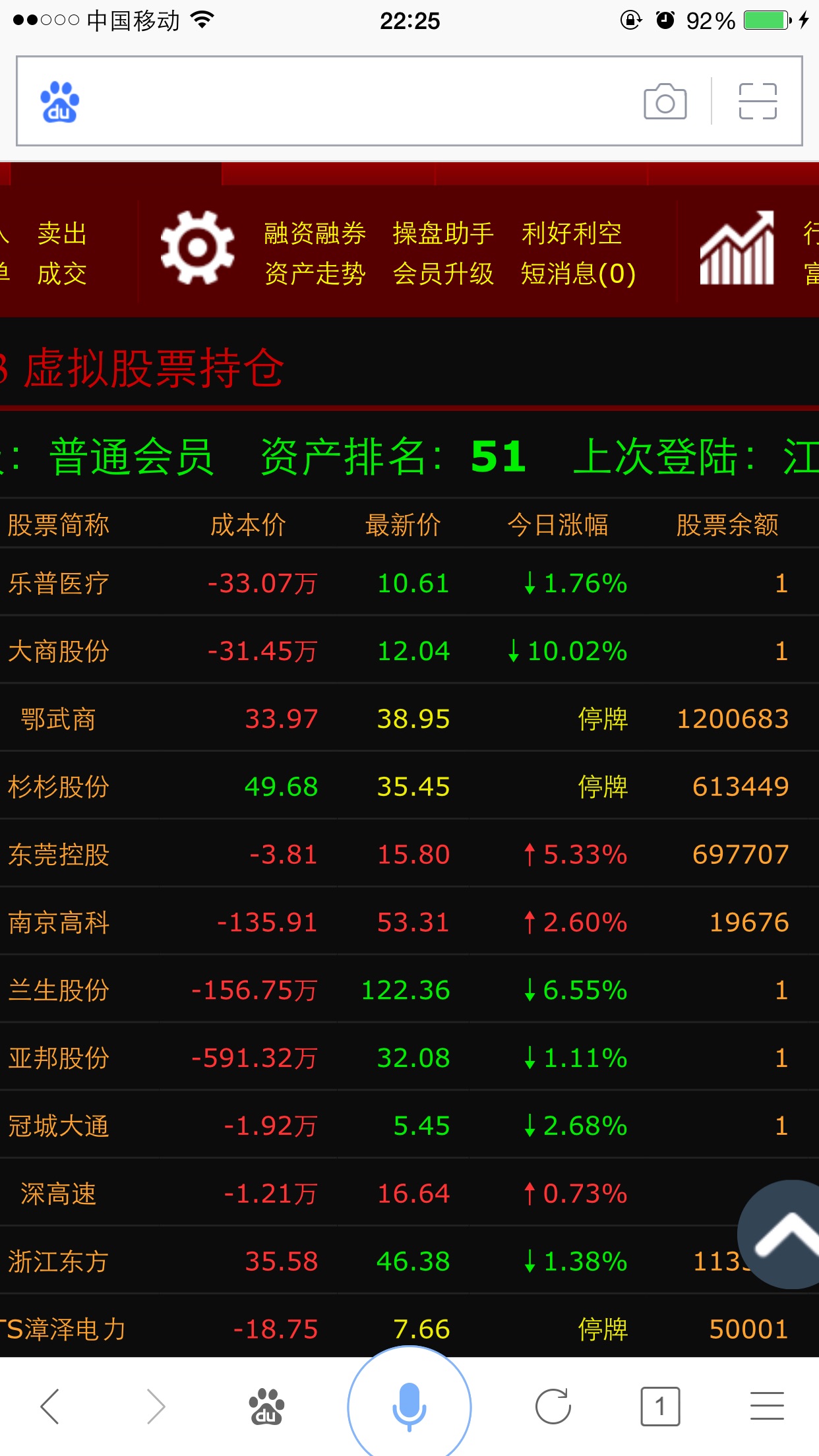还好收盘前拉了2块多,给自己多得了2亿多。可惜了目前全游侠最便宜的票了。两周加仓了5400多万股,这两天砸36.36并挂单1600多万股压36.36的朋友,你的压单被我吃了,可惜35块多和34块多的4000万股接单没人砸。从我自己对游侠股票研究的虚拟价值系统分析,鄂武商的正常下限值在45元上下。