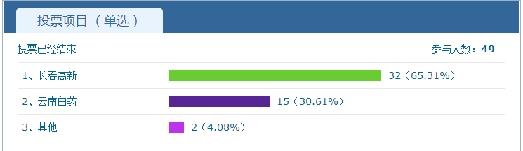 本次投票已结束,现公布结果。