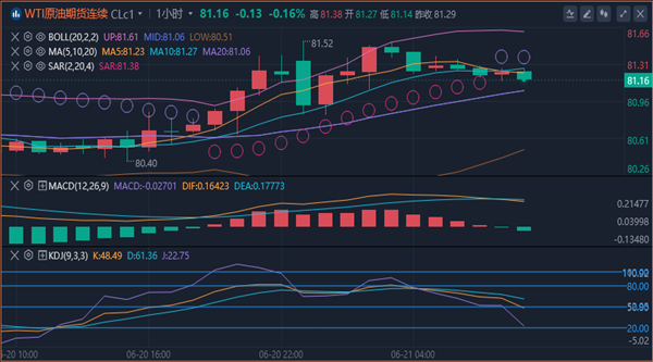 K线整理之后,本周连续两根大阳线形成中继反弹,局部有反转向上之势,同时也收复了次高点,结合周线的底部回升,带动日线也有反转之势。周线和日线继续看涨。原油4小时图走出一波单边上涨,以整理代替了回踩蓄势,依托中轨整理后继续放量向上顶开上轨,目前短线走得强势,以破高点和中轨的支撑点79.30-79.50做为短期临界点,中轨之上保持看多即可。此前油价受到100日均线和200日均线的双重强阻力压制后回落,短线重回跌势的风险有所增加。然而,从技术面来看,原油价格下方仍有较强的支撑,参考77.7附近的位置。如果这一位置能够得到有效支撑,那么在多头趋势下,价格仍有上涨的空间。 本周在守住77.5低点布局多单,下破再调整方向。综合来看,原油今日短线操作思路上建议以回调做多为主,反弹高空为辅,上方短期重点关注82.5-83.0一线阻力,下方短期重点关注80.3-79.8一线支撑。