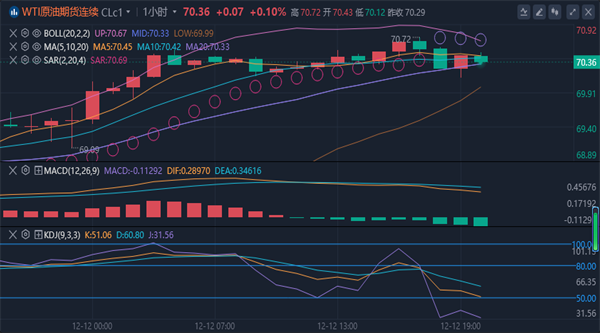 (美无铅汽油04,2.1573,-0.37%,模拟交易)再次向上运动,进一步表明了油价有上涨的预期,但是动能还不足。四小时级别上看,布林带出现走平转态,油价运行在中轨下方承压,油价在66.9美元一带企稳拉升,在68.8美元一带遇阻出现了一个调整,在67.6美元一带企稳再次出现了一个向上运行,但是尾盘出现了遇阻迹象,上方强弱一线在69.5一线,继续突破后油价有望出现另一个向上突破,如果继续承压将考验67.69区域支撑,然后就是起涨点66.9水平震荡区间防守。综合来看,原油今日操作思路上以回踩低多为主,反弹高空为辅,上方短期关注71.3-71.8一线阻力,下方短期关注69.5-69.0一线支撑。