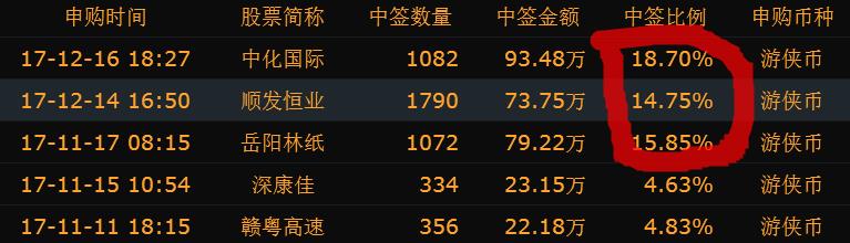 我也说说我的中签率……申购时间 股票简称 中签数量 中签金额 中签比例 申购币种