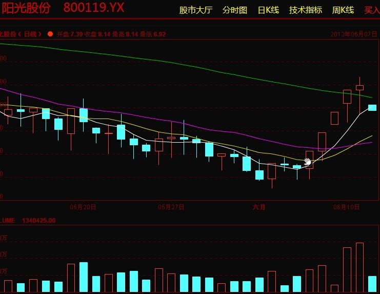 阳光一路阴跌,振荡下午,7号,8号拉涨停。让一些人卖了,以为跌下去再吃回来。二天完成了17亿的收货过程。同时发布消息,让大家注意A股阳光有重组。提高幻想,成长,上涨的预期。